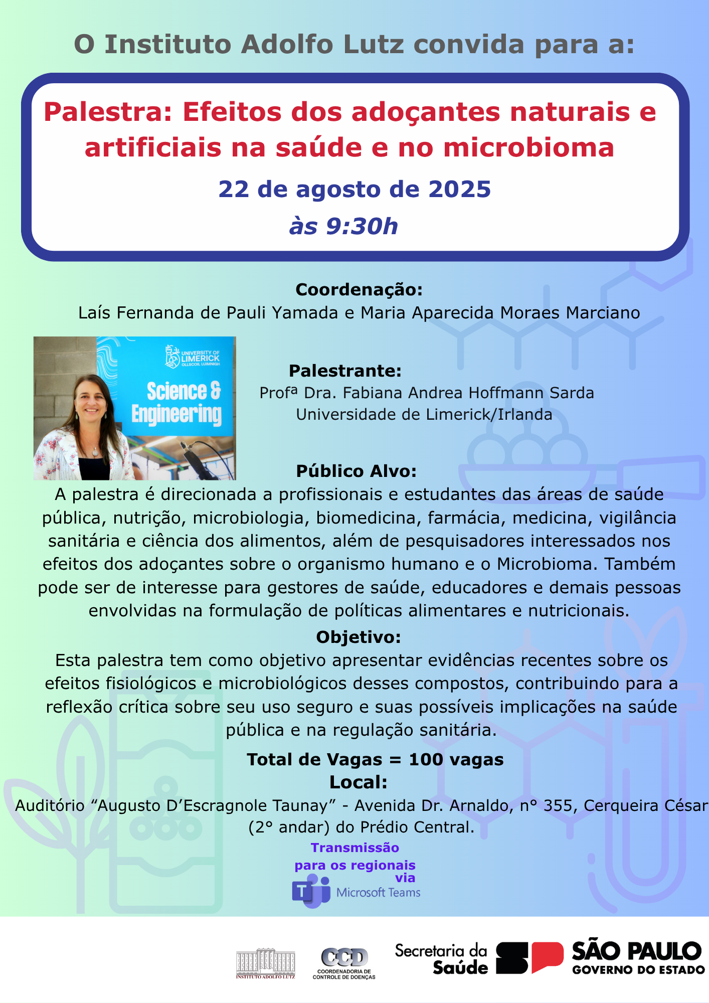 22/08/2025 - Palesta - Efeitos dos adoçantes naturais e artificiais na saúde e no Microbioma.